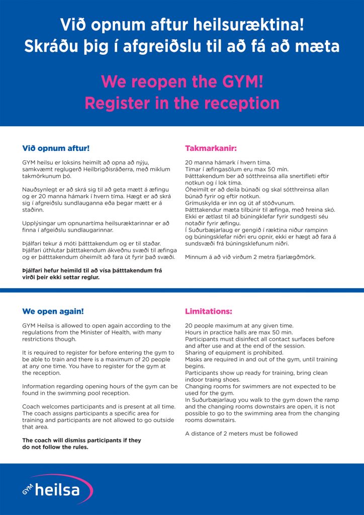 Í Álftaneslaug er lokað í sundlaug og potta en stefnt að opnun 17. ágúst. GYM heilsa er opin í Álftaneslaug eins og venjulega. Við minnum meðlimi GYM heilsu í Garðabæ á að opið er i sundlaug Garðabæjar og kortin ykkar gilda líka þar i sund.